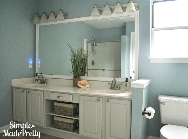 Including straightforward embellishment or structure in your home requires little exertion and makes measurement to a room. We added a seat rail to our lounge area to make it look progressively formal and an embellishment outline around our manufacturer grade restroom mirror to give a completed look.