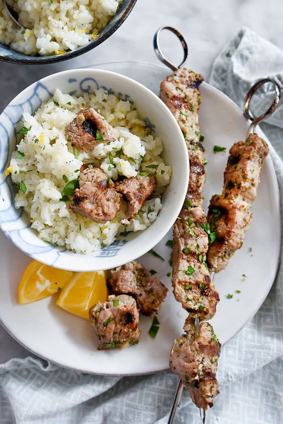 Pork Souvlaki With Lemon Rice