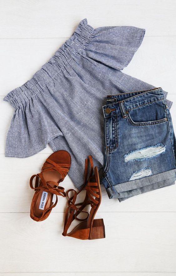 Seas the Day Blue and White Striped Off-the-Shoulder Top